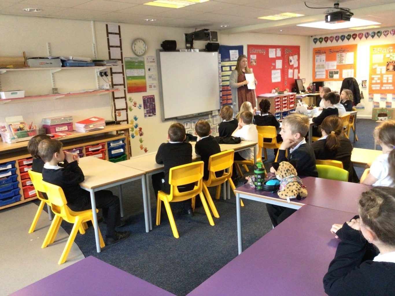 On Monday, we had two teachers from Teignmouth Community School – Exeter Road come and set us some STEM challenges. Reception had to investigate how changing the weight in the bottom of skittles affected how easy it was to knock them over.