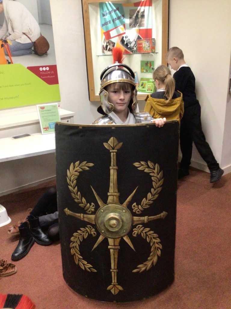 On Wednesday 11th January, year 3 and 4 went on a trip to Tiverton Museum to learn more about the Romans as part of their topic this half term. Whilst there, they had the opportunity to try on some armour, make a mosaic, do an archaeological dig, learn about the food they would have eaten and go back in time to a Roman school lesson. After all this, they also had the chance to look around the museum at some of the other artefacts and exhibits. They came back full of excitement and stories so it was definitely a successful day out!